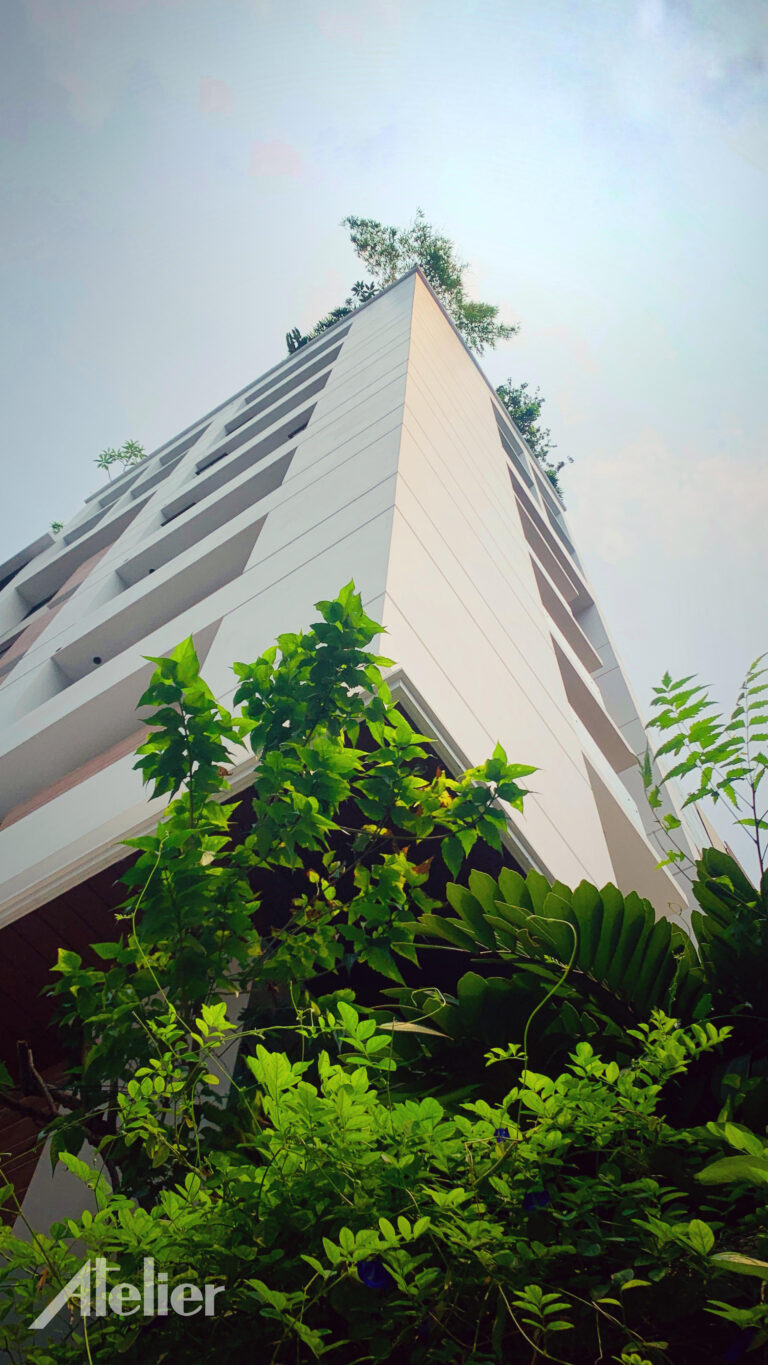 Each home is shaped to invite daylight and breeze, while protecting privacy. Wide windows and terraces frame the sky, and the building steps back as it ascends, allowing balconies to transform into sunlit terraces for the floors above. These cascading platforms, softened by foliage, filter the cityโs noise and create small, suspended courtyardsโsanctuaries of calm above the street.