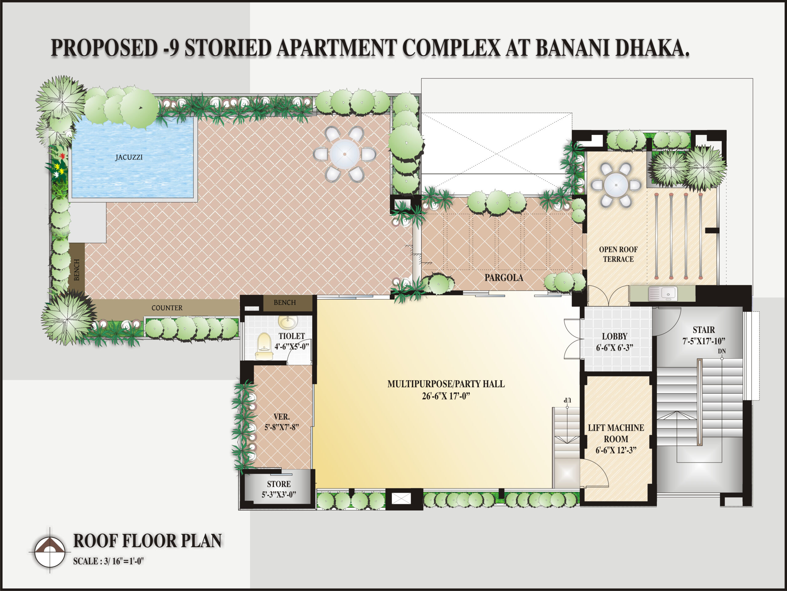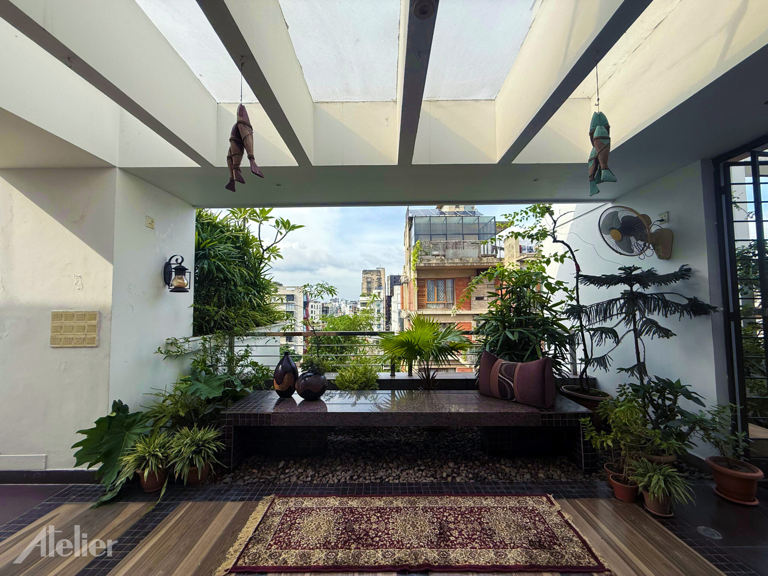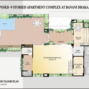 At the crown, a landscaped roof unfolds like a private garden in the sky. A jacuzzi, intimate seating, and a party pavilion with its own kitchen, store, and washroom invite gatherings or quiet contemplation. Water, greenery, and sky meet here, giving the residence a signature flourishโan elevated oasis above the hum of the city.